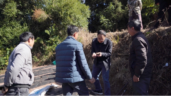 理论培训结束后,张教授深入田间地头,现场查看滇黄精种植地块的土壤墒情与种苗生长情况。期间,张教授结合田间植株实际生长状态与土壤理化特性,深入分析了黄精生长所需的水分管理要点与营养供给策略,并针对性指出当前种植过程中存在的问题。随后,张教授还现场演示了黄精种植的关键操作步骤,同时详细讲解了病虫害防治的核心要点及对应解决方案,让村民直观学习操作技巧。