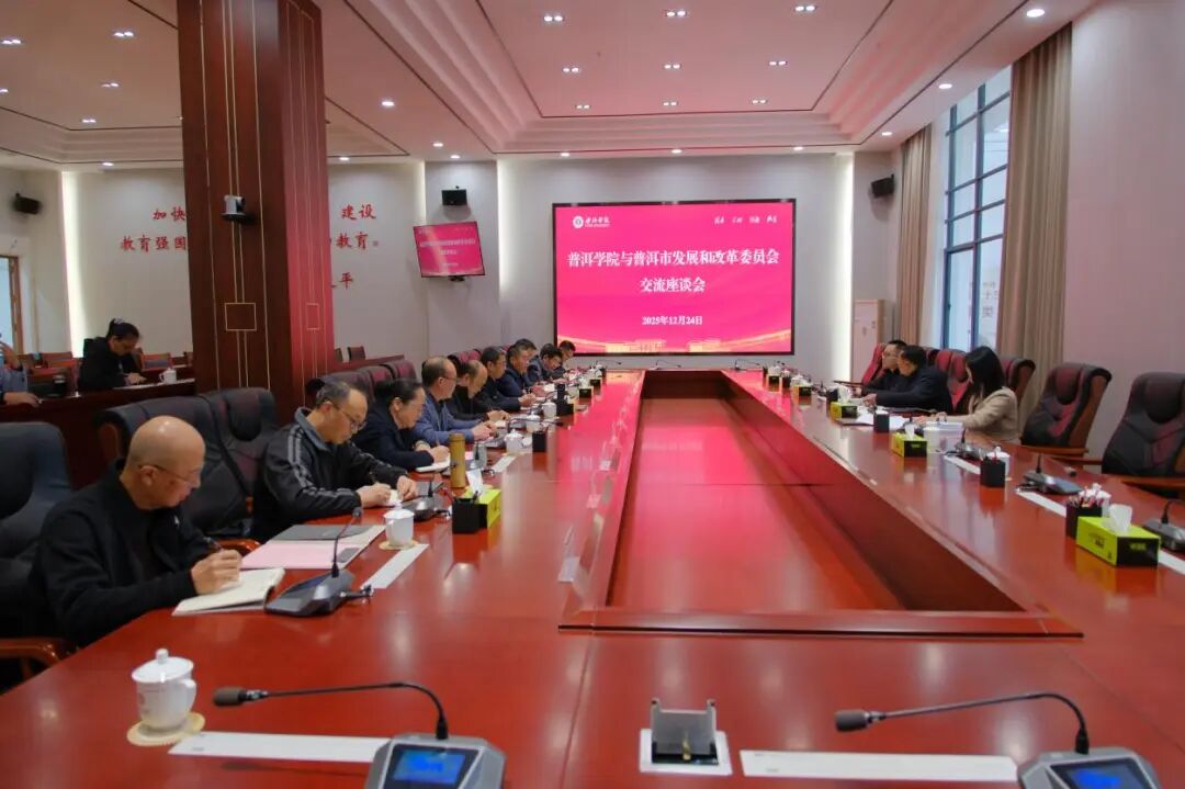 12月24日,普洱学院与普洱市发展和改革委员会举行交流座谈会,围绕校地资源对接、项目合作、服务地方发展等议题开展交流。普洱学院院长杨斌,党委委员、副院长李祖军,副院长陈勇;普洱市发展和改革委员会副主任、市国动办专职副主任张兆辉参加。
