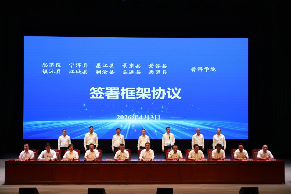 4月3日下午,普洱市校地合作联席会议暨项目签约仪式在普洱学院举行,全面落实普洱市县(区)委书记进普洱学院共商合作活动成果,标志着普洱校地共建发展共同体、价值共同体、命运共同体迈出了从“共识”到“行动”、从“框架”到“项目”、从“纸面”到“地面”的关键一步。