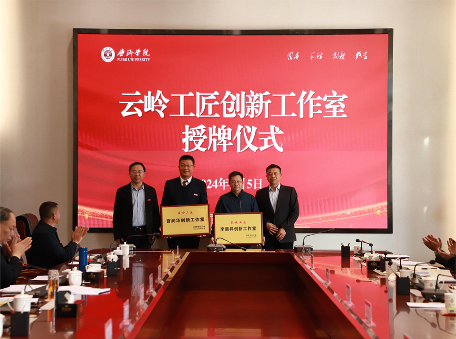 云岭工匠、茶城工匠创新工作室授牌(2024年1月5日摄)。