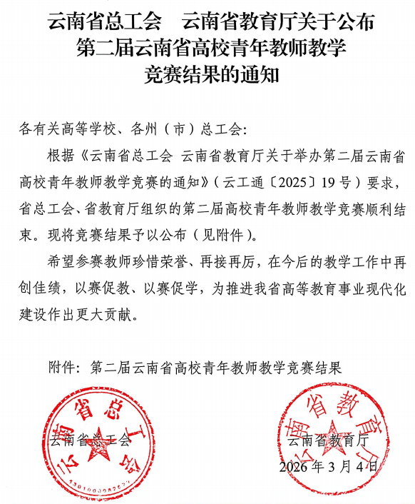 近年来,普洱学院坚持“人才强校”战略,把青年教师成长作为内涵发展的核心任务,探索构建“引育并举、以赛促教、教研相长”的培养体系。学校通过完善教学激励机制、搭建教研交流平台、强化师德师风建设,持续提升青年教师教学能力与育人水平,一批政治素质过硬、业务能力精湛的青年教师快速成长。下一步,普洱学院将继续立足国门大学定位,聚焦立德树人根本任务,不断夯实人才根基、提升办学质量,为边疆高等教育高质量发展与地方人才培养提供更强支撑。