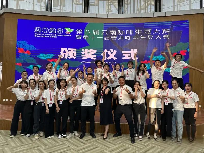 十年前的普洱咖啡,品鉴师、渠道、品质、市场都才起步,如何发挥云南咖啡交易中心的中介服务职能,提高咖啡生豆是关键,一颗生豆连接起一串的产业,2015年云南咖啡交易中心成功参与筹备“天赐普洱中国精品咖啡生豆拍卖会”,来自大陆、台湾、美国等过节和地区的咖啡行业专家、业界人士和咖啡爱好者共同见证了“中国精品咖啡第一拍”并参与竞拍。头一天刘海峰和小伙伴凌晨12点到刀官寨,用一辆皮卡车冒雨陆续把包装盒运回公司,连夜包装供第二天拍卖会使用。天刚刚亮他们才包装完毕,拍卖会结束后当看到咖啡企业高兴的手舞足蹈时,刘海峰丝毫不觉的疲倦而是打心眼跟着高兴。在他们的努力下,云南生豆大赛从2015年参赛企业56家到2023年的120家。参赛精品吕从50%到98%,平均分从78分到82分,参赛评委从10人到300多人。他们用实际行动助力和见证了云南咖啡生豆质的提升。