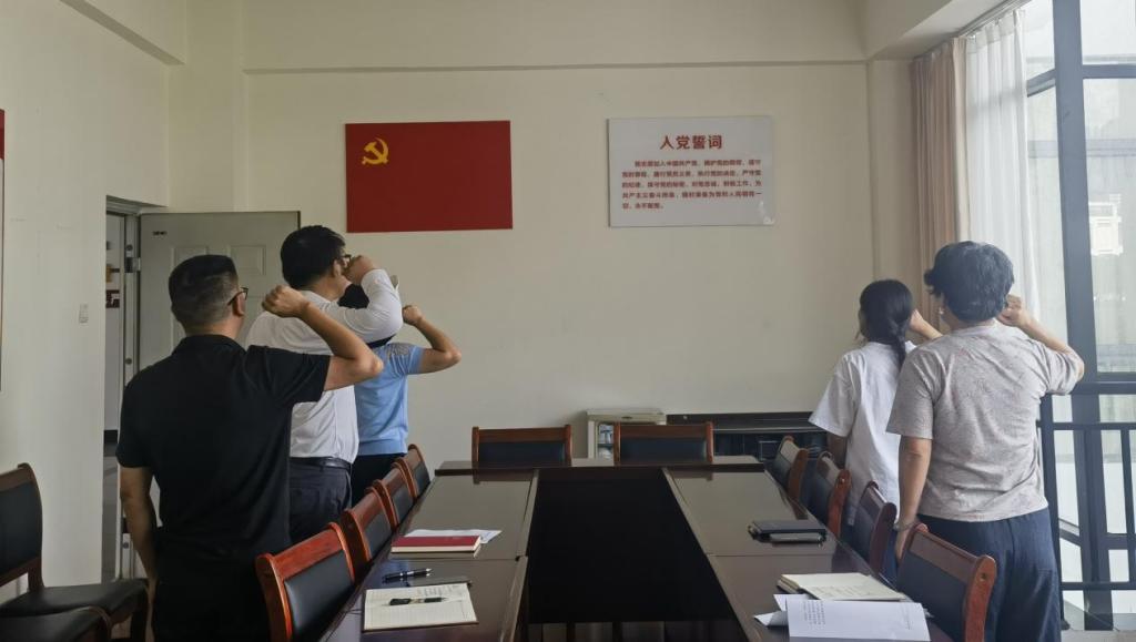 最后,全体党员重温入党誓词。重温誓词能时刻提醒党员“我是谁”“为谁而战”,强化“共产党员”的政治身份认同。
