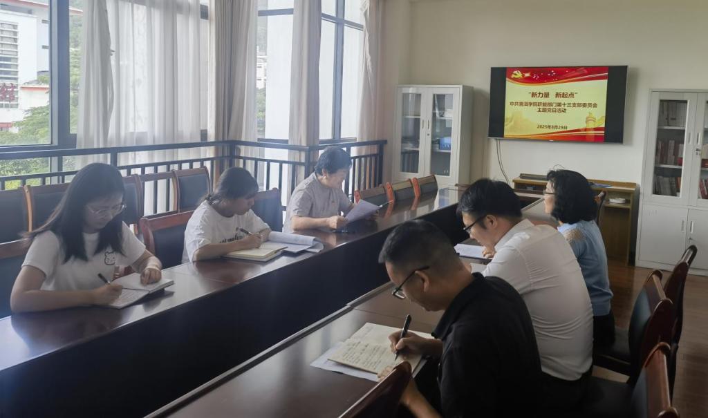 8月29日(星期五)下午16:30,中共普洱学院职能部门第十三支部委员会开展了“新力量 新起点”主题党日活动,活动由支部书记周剑云主持,全体党员参加了活动。